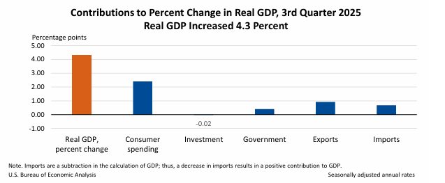 O mercado aguardava com ansiedade os dados do PIB dos EUA 3T 2025, especialmente após o período de incerteza provocado pelo encerramento temporário do governo (government shutdown). Hoje, o Bureau of Economic Analysis (BEA) finalmente libertou a estimativa inicial, e os números são claros: a economia americana não só está viva, como está a acelerar. gdp3q25-ini.pdf